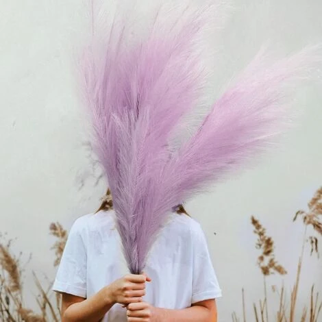 3 Pezzi Erba Della Pampas Secca Decorative, 110 Cm Pampas Alte Piume Decorative Per Vaso, Boho Viola Colore, Per Decorazioni Natale Interno Casa Nozze