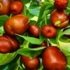 Frutti: bacche a uovo verde screziati rosso, frutti commestibili