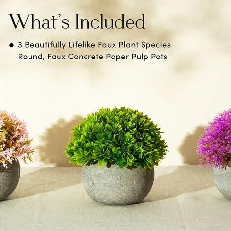 “”Vero o falso? I tuoi amici non lo sapranno mai! Mentre molte piante decorative sono palesemente finte, il nostro set di piantine finte multicolori ha un aspetto meraviglioso, così fresco e naturale da avere l’aspetto reale! Questo set di piante da interno è in un elegante vaso simile al cemento di polpa, sono inclusi 3 design unici: fiori di lavanda, fiori di pesco e la classica combinazione succulenta. Disponili insieme o separali, ognuno con il proprio spazio!A differenza di altre piantine ornamentali finte che sembrano consumate e consumate , le nostre piante sono accuratamente confezionate per sembrare fresche e pronte per essere gustate. Misurando solo 14 x 12 cm, questo set di piante d’appartamento è una dichiarazione di stile per qualsiasi stanza e non richiede cure da vere piante d’appartamento! Posizionale ovunque e abbellile con un tocco di verde che durerà per anni. sempre.Dai una nuova lei vive a casa! Rinfresca qualsiasi ambiente con le nostre piccole piante artificiali! Cucina, ufficio, camera da letto, bagno! Posiziona scatole regalo in vasetto finto come decorazioni su tavoli, tavolini, mensole, ripiani della cucina o come centrotavola. Senza profumo, questi falsi verdi non confondono gli odori in cucina. Le piante finte in vaso bianco sono realizzate in plastica PE innocua e sono sicure per i bambini e gli animali domestici curiosi. Che tu abbia il pollice verde o un serial killer di piante d’appartamento innocenti, ora puoi lasciarti tutto alle spalle. Con le nostre piante finte da sistemare e dimenticare, non ti resta che scegliere dove metterle per arredare il tuo ufficio, studio, biblioteca, camino, bagno e goderti ogni giorno la loro vegetazione fresca e vivace. Non dovrai più preoccuparti di ricevere abbastanza luce solare o la giusta quantità di acqua per le tue piante!Sappiamo che i mobili di alta qualità e ben progettati sono ciò che trasforma un edificio in una casa. Siamo una piccola azienda a conduzione familiare e ci impegniamo a fornire piante artificiali ben fatte che abbelliranno la tua casa e renderanno tutti felici per gli anni a venire. Mettiamo sempre al primo posto la soddisfazione del cliente. Piante finte di plastica in vaso, sicure per bambini e animali domestici – piccole piante artificiali da interno. “””