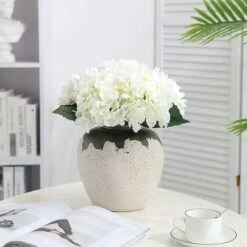 SOEKAVIA Fiore Di Ortensia Artificiale, 5 Pezzi Di Bouquet Di Ortensie Con Testa Da 6,3 Pollici A Stelo Lungo In Seta Per Matrimonio, Casa, Hotel, Decorazioni Per Feste, Composizioni Floreali (bianco)