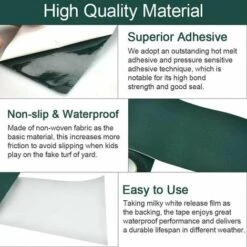 Erba artificiale speciale: la dimensione di questa striscia è di 5×15 cm, che può essere tagliata in base alle proprie esigenze. È più comodo da portare in viaggio senza dover trasportare grandi rotoli di nastro adesivo o coppette adesive. È stato appositamente progettato per la costruzione e la manutenzione di erba sintetica ed è il tuo strumento ideale per la riparazione del tappeto erboso.